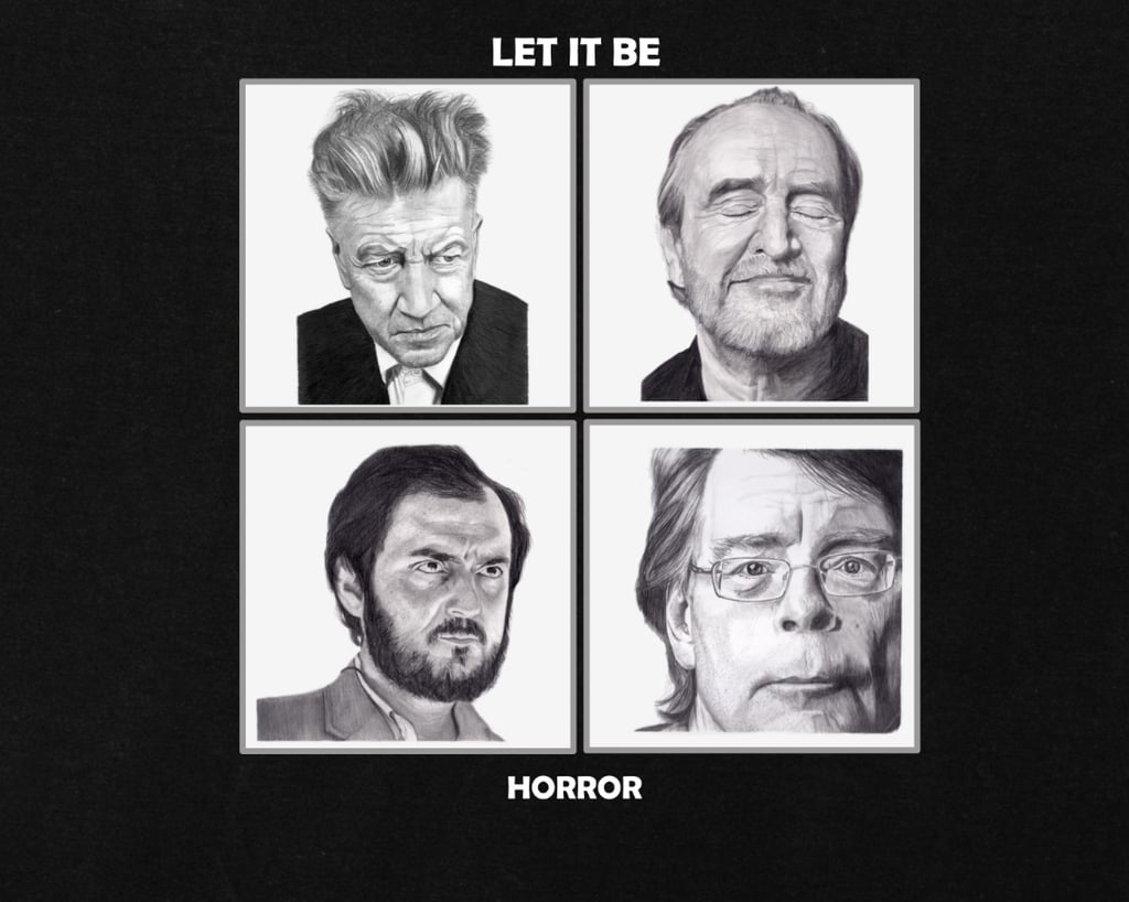 I wanted to somehow bring these drawings together as a whole. Being a huge Beatles fan I stumbled on the idea of changing the iconic Let It Be album cover to Let It Be Horror featuring some of the biggest names in the horror world.