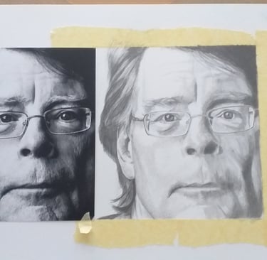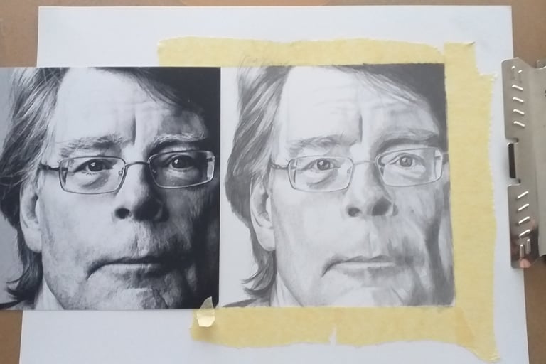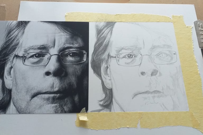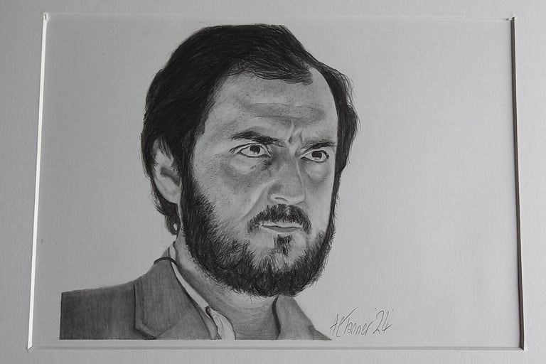 This design has been in the making for the past 3 years. I studied as a portrait artist and in my downtime I would always create a drawing for myself to keep. So over the years I have drawn David Lynch, Wes Craven, Stephen King and Stanley Kubrick.